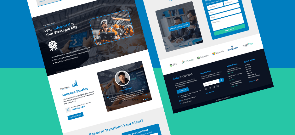 A professional website UI/UX design concept for InfoPortal, a company providing industrial and connectivity solutions.